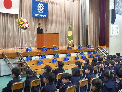 児童集会 (全校) 12月10日(水) 今日は、全校朝会で、表彰を行いました。全国書画展覧会小学生書の部、未来の科学の夢絵画展、ライオンズ国際平和ポスターコンテスト、税に関する絵はがきコンクール、地域のクラブ活動などたくさんの賞をいただきました。また、児童会執行部が進めている生活目標では、「あいさつ」の話題が出ていました。明るく気持ちの良いあいさつが聞こえる学校をみんなで目指していきたいとよびかけていました。
