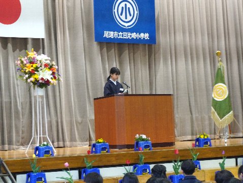 児童会執行部認証式・引き継ぎ式(全校朝会) 9月24日(水) 今日は、児童会執行部認証式・引き継ぎ式が行われました。前期児童会執行部の6名は、自分が取り組んできたことやこの経験を通して成長できたこと等を一人一人が自分の言葉で語ってくれました。全校児童は、これまでの前期児童会の活躍に大きな拍手で感謝の気持ちを伝えました。 そして、前期児童会から後期児童会へと児童会旗が受け継がれていきました。後期児童会執行部の活躍が楽しみです。児童会だけが中心として動くのではなく、リーダーとフォロワーの関係を大切にしていき、児童・教員みんなで素敵な日比崎小学校にしていきたいと思います。