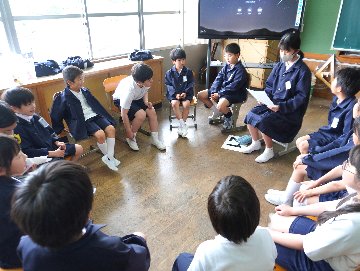 校内授業研究(1年、4年、5年) 11月12日(水) 今日は1年1組、4年1組、5年1組で校内授業研究を行いました。1年1組の「おとうとねずみチロ」の学習では、主人公のチロの声は本当に届いたかどうかについて考えました。ネームプレート黒板に貼り自分の意見を明確にして,その理由について小グループで話をしました。学習の最後には,チロのぬいぐるみに対して自分の思いを伝える活動を行いました。伝え合うことで,お互いの考えを受け入れ学びを深めていくことができました。4年1組の「くらしの中の和と洋」の学習では、和室と洋室の良さが書かれている事例を基に、「尾道にホテルをつくるとしたらどちらが良いと思うか」という視点で議論が交わされていました。自分の生活と結びつけながら考えたり、小さな子や外国人のことを考えて発言するなど、本文と自分の考えを入れながら発言する力が付いていました。5年1組の「ぼくはなきました」の学習では、今回も「ことばの教育研究会」の桑田先生に授業をしていただきました。どこに目を付けたら物語をより深めていくことができるのか考えさせていくと、「繰り返しの文がある」ということに子ども達が気付き、そこから物語を読み進めていきました。だんだん心情が変化している書き方になっていることや「消しゴム」が心情を比喩した表現になっていることに気付くなど、読みとる力が積み上げられていました。