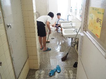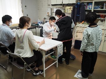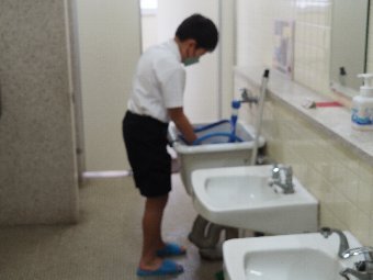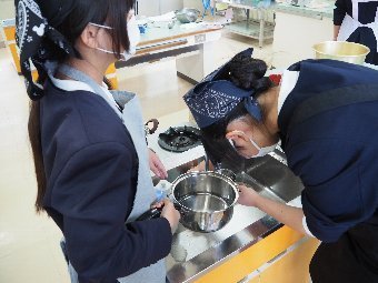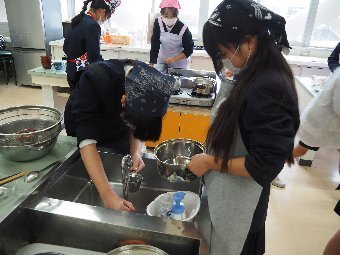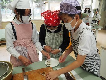 給食では,食中毒予防のために,決められたルールに沿って,調理をしています。例えば,手洗いは爪ブラシを使って2回洗います。野菜は3回以上丁寧に洗って汚れをおとします。また,煮物や揚げ物などはしっかり中まで火が通っているか,サラダはしっかり冷えているかどうかを3か所温度を測って確認します。そして,料理に使う食材と出来上がった料理は50gずつ冷凍保存をして,何かあったときに検査ができるようにしています。給食室の先生は,安心・安全 のために大切な作業をたくさんしてくださっています。感謝をして給食をいただきましょう。
