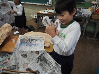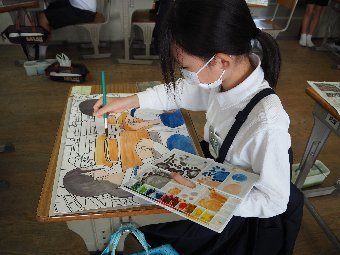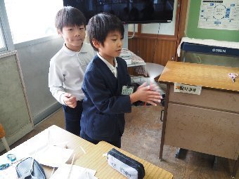【放送原稿の紹介】今日の献立は,味付パン,牛乳,いかのカレー揚げ,ゆでキャベツ,野菜スープです。今日は手洗いについてのお話です。みなさんは,給食を準備する前に手をきれいに洗いましたか。手には見えないばい菌がたくさんついています。そのばい菌が体の中に入らないように,食事の前は手をきれいに洗いましょう。また,石けんを使わずに,水だけで洗っている人はいませんか。水だけで手洗いをすると,反対にばい菌が増えてしまうこともあります。必ず石けんを使って手を洗いましょう。石けんを泡立てると,手のしわや爪の間にかくれているばい菌がかき出されて,泡に移ってくれます。その後はしっかり水で石けんを洗い流 し,きれいなハンカチで手をふいてください。手洗いは,自分の体を守る方法の一つです。食事の前後,外から帰ってきた時,トイレに行った後は,必ず石けんで手を洗うようにしましょう。