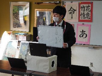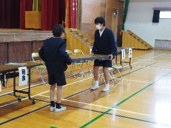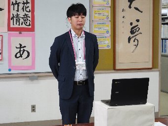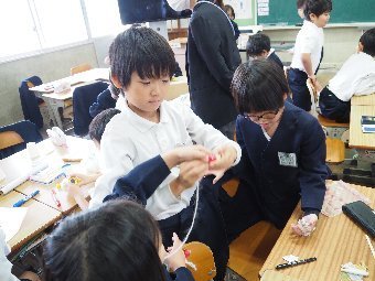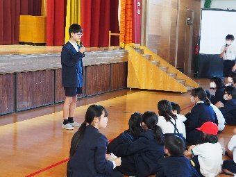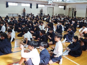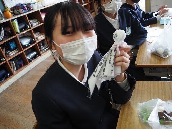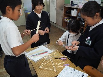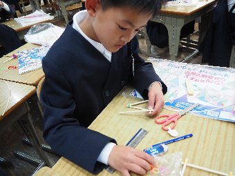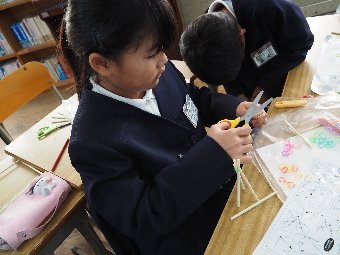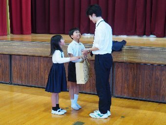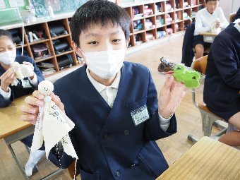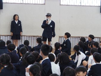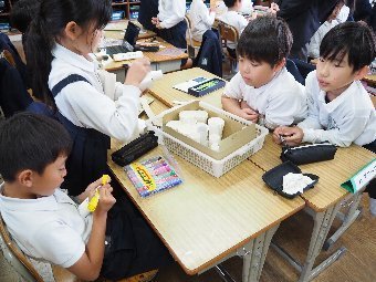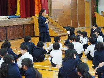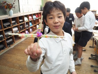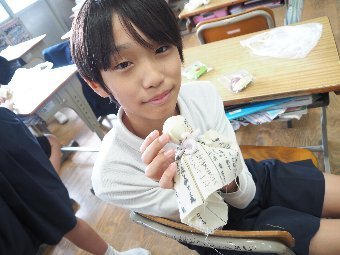 【放送原稿の紹介】今日の献立は,ごはん,牛乳,ちくわの石垣揚げ,大根のかおりあえ,華風スープです。今日は,はしの持ち方についてお話しします。はしは,正しく持つことで,先が鳥のくちばしのようになり,きれいな三角形ができます。この形で持つと,食べ物をはさむということはもちろん,切る,混 ぜる,すくう,巻くなど,はしの力を存分に発揮できるようになります。また,マナー違反の使い方もあります。食べ物をさす「さしばし」,はしをペロペロなめる「ねぶりばし」,はしでお皿をよせる「よせばし」などです。正しいはしの持ち方は,はじめは難しいかもしれませんが,毎日練習していると,はしの良 さが分かるようになります。ぜひ正しいはしの持ち方をマスターして,はしを美しく使える人になりましょう。