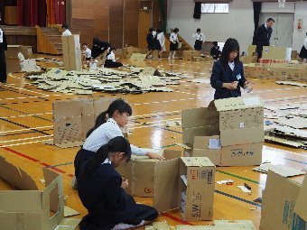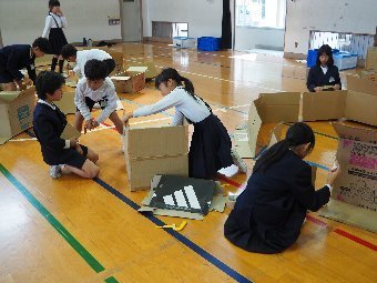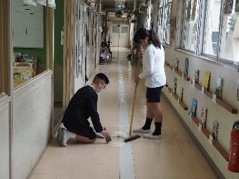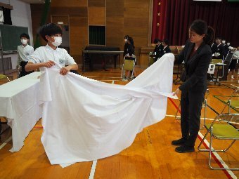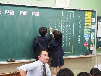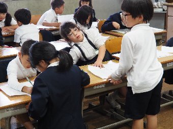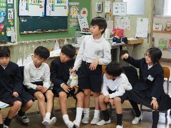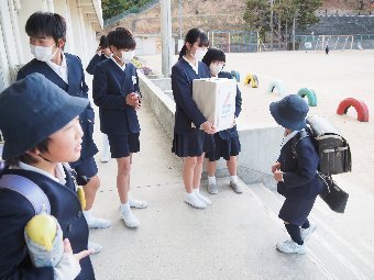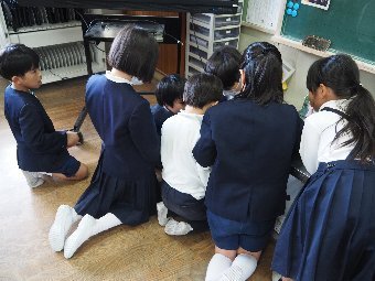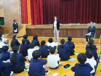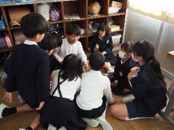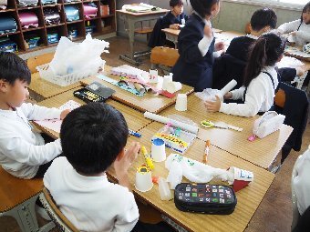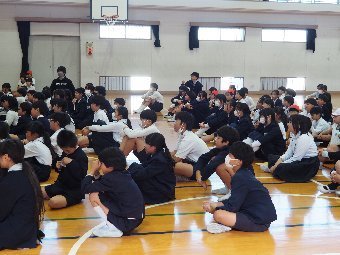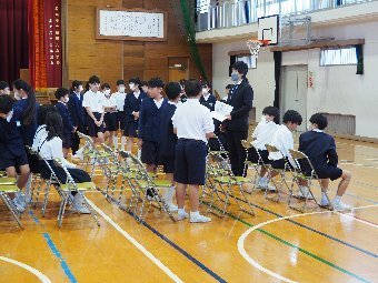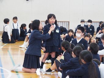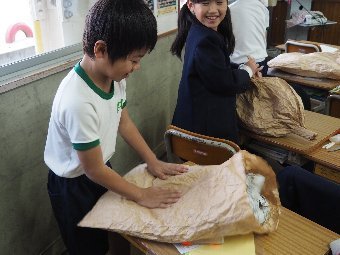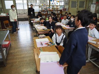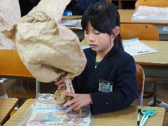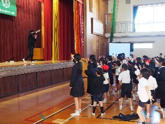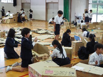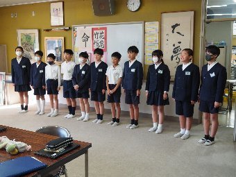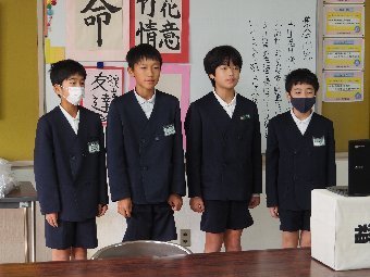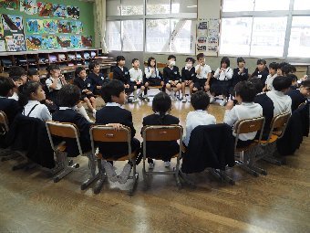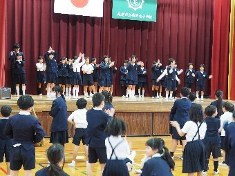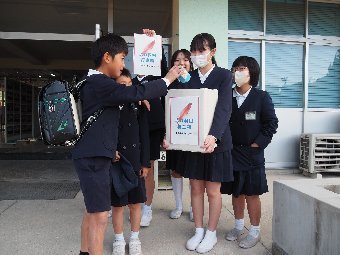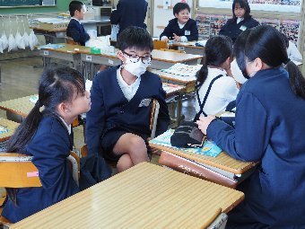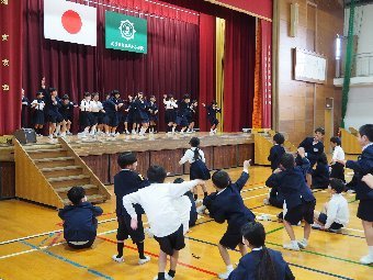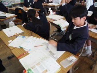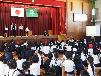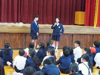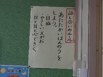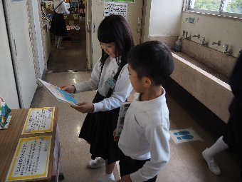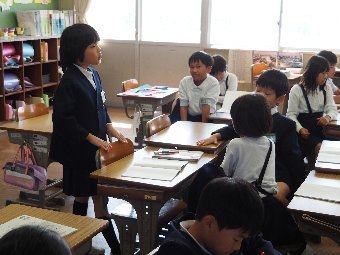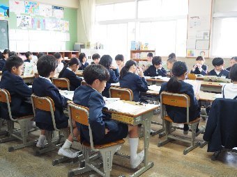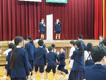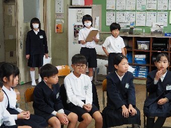 【放送原稿の紹介】今日の献立は,リッチパン,牛乳,コーンシチュー,ひじきサラダです。今日は給食の準備や後片づけについてお話しします。まず給食準備についてです。給食当番さんは手洗いや服装を整えて,当番の仕事をしましょう。クラスのみなさんは,給食当番さんがスムーズに配膳できるよう協力しましょう。そして給食を食べ終わってからの片付けについてです。食べ終 わった後の食器に食べ残しはありませんか?お盆の上にはストローの袋やパンの袋などが残っていませんか?スプーンは同じ向きに返していますか?食器は同じ高さになるように返していますか?みなさんが食べた後の食器などは,調理員の先生方が丁寧に洗ってくださいます。給食にかかわるたくさんの人たちに感謝していただきましょう。