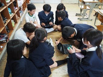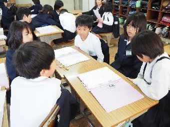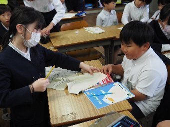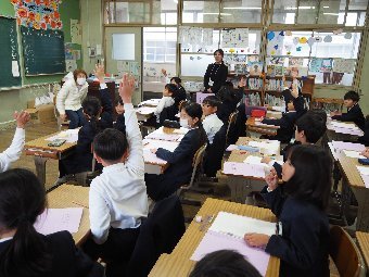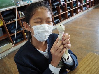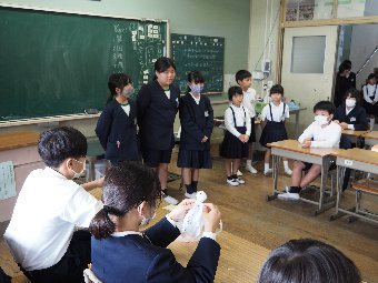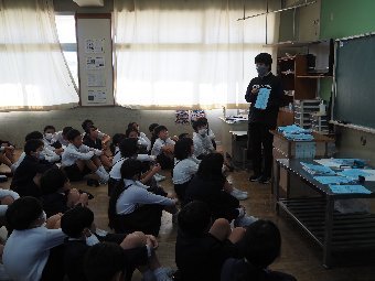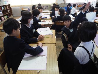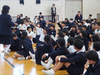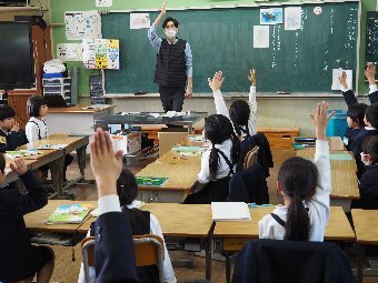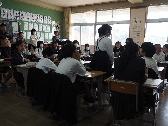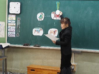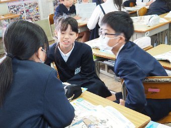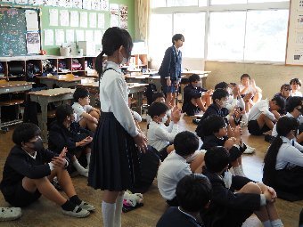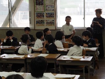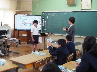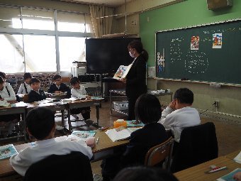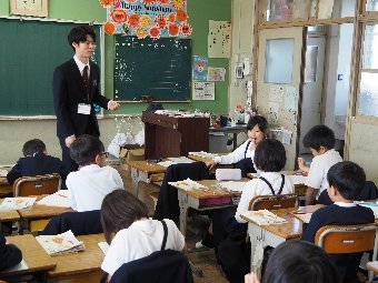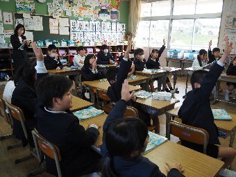 【放送原稿の紹介】今日の献立は,ごはん,牛乳,さばのみそ煮,ゆでキャベツ,かきたま汁です。今日は魚の食べ方についてのお話です。魚をきれいに食べるためにはどうしたらよいでしょう。魚には,上の身と下の身の間に骨があります。上の身を食べてから下の身を食べるようにします。左からはしで一口ずつ切り分けて食べるようにしましょう。骨は食べながらはしで取ります。口の中に骨が入ってしまった場合は,はしで取ります。口の中から出すときは,手で見えないように隠します。骨はお皿のはしにまとめておくようにしましょう。また,魚をひっくり返して食べてはいけないルールもあります。頭の付いている魚もきれいに食べることができるか挑戦してみましょう。