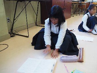 【放送原稿の紹介】今日の献立は,小型味付パン,牛乳,ミートスパゲッティ,ごまドレッシングサラダです。今日は「食べるときの姿勢 」についてです。みなさんは食事中もよい姿勢に気をつけて食べていますか。食事のとき,背中が丸くなっていたり,ひじをついて食べたりすると,見た目が悪いだけでなく,食べ物の消化にもよくありません。よい姿勢は,机に向かってまっすぐに座 り,いすに深く腰掛け,背中をまっすぐに伸ばして,足のうらを床にピタッとつけて座ります。勉強の時と同じですね。よい姿勢 で,お皿を持って食べるようにしましょう。