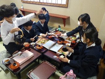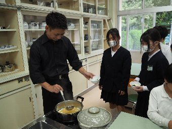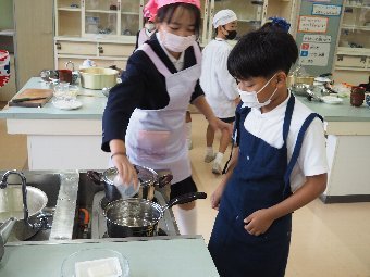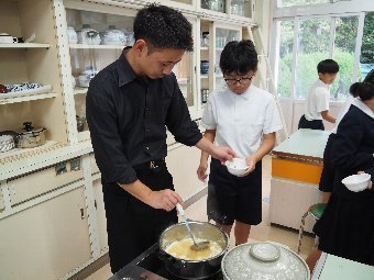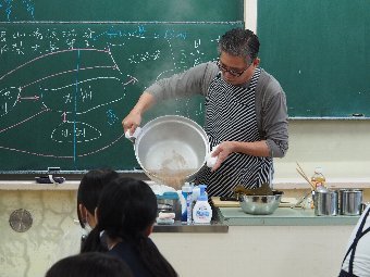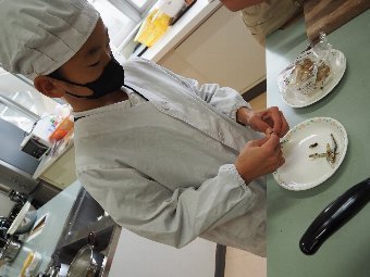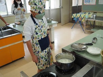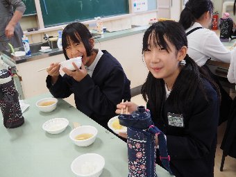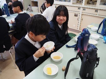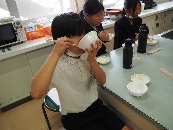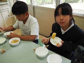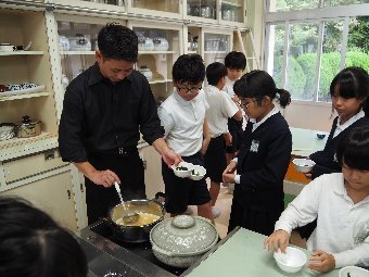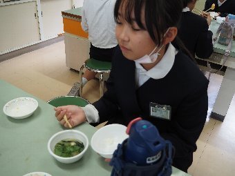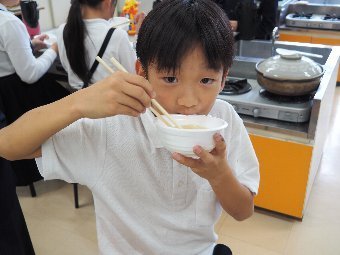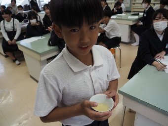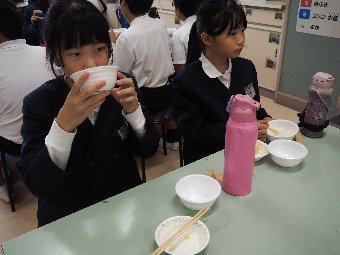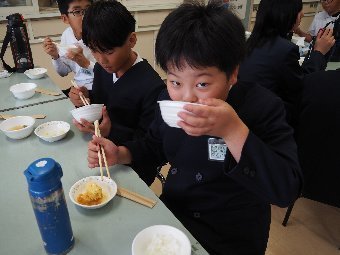 今日の給食には、かつおと昆布で出し汁をとったすまし汁があります。出し汁のうまみを感じてみましょう。