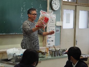 【放送原稿の紹介】今日の献立は,味付パン,牛乳,サーモンシチュー,フレンチサラダです。給食では,毎月一回,世界の国の料理を取り入れています。今月は,ノルウェーの「サーモンシチュー」を紹介します。ノルウェーは北ヨーロッパに位置し,北極圏を含む北の海に面した細長い国です。世界でも有数 の漁業国で,タラやサケなどがたくさんとれます。また,酪農やじゃがいもの栽培が盛んで,これらの食材を合わせた料理が「サーモンシチュー」です。寒い時期に,体の中から温めてくれる料理です。今回使用している鮭についてです。骨はとってありますが,小さな骨はあるかもしれません。気を付けながら,よく噛んで食べましょう。