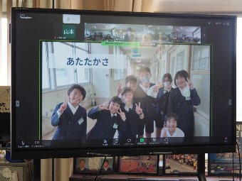 【放送原稿の紹介】今日の献立は,ごはん,牛乳,肉じゃが,ごま酢和えです。みなさんは食事の前後にあいさつをきちんとしていますか。「いただきます」の「いただく」という言葉は「もらう」という言葉をていねいな言い方にしたものです。「いただきます」は「大事な命をもらいます,ありがとう」という気持ちが込められた言葉です。わたしたちが食事をするまでには,多くの人びとがかかわっています。野菜を育てた農家さん,生産地から運ぶ人,お店で売る人,料理を作る人など「ごちそうさま」の言葉には,「食事ができるまでにかけまわっていただき,ありがとうございました」という意味があります。食事ができることに感謝し,心を込めてあいさつをしましょう。