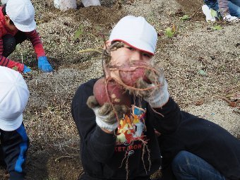 【放送原稿の紹介】今日の献立は,味付パン,牛乳,ポトフ,れんこんのごまドレサラダです。 今日は,「れんこん」のクイズをします。れんこんには,穴が開いています。それはなぜでしょう?①浮袋の役目②呼吸をするため③水を送るため(※くり返す)答えは②の呼吸をするためです。れんこんは,泥の中で育 ちますが,酸素を取り入れるために水の上の葉とつながり,穴を通して酸素を取り入れています。いくつもの穴が開いているのは、一つの穴がふさがっても他の穴で確実に空気を送ることができるようにするためです。