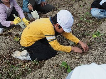 【放送原稿の紹介】今日の献立は,ごはん,牛乳,うま煮,菜の花和えです。今日は,菜の花についてお話しします。春の味覚 「菜の花」は,つぼみを食 べる花野菜です。特有のほろ苦さと甘味が春の訪れを教えてくれます。このほろ苦い成分には,体の中の毒素とくっついて体の外に出してくれる働きがあることがわかっています。砂糖としょうゆで「あえ物」にしています。花になると苦味が増して食べにくくなるので,花が咲く前の一瞬の風味を味わいましょう。