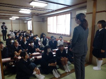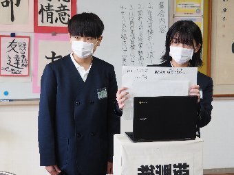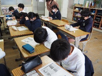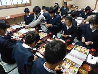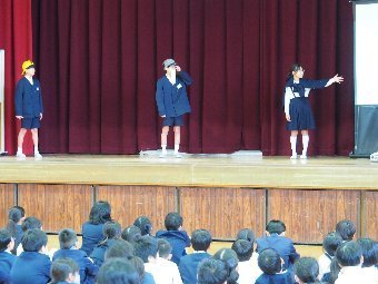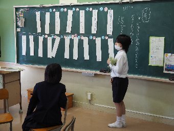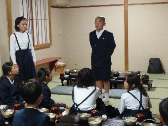 【放送原稿の紹介】今日の献立は,ごはん,牛乳,さばのみそ煮,せん大根,かきたま汁です。みなさんは食事をするとき,どのように食べていますか?