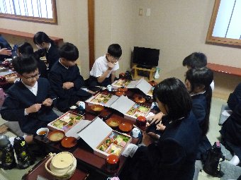 【放送原稿の紹介】今日の献立は,リッチパン,牛乳,お豆さんシチュー,ひじきサラダです。明治22年,鶴岡市のお寺の境内に,お坊さんによって小学校が作られました。お坊さんは,生活が苦しくて学校に昼食を持ってこられない子どもたちに,無料で昼食を作りました。献立は,おむすびと焼き魚,漬物といった質素なものでしたが,これが日本で初めての給食といわれています。この後,全国に広がっていきましたが,戦争により中断されていました。そして戦後,昭和21年12月24日から学校給食が再開され,この日を「学校給食感謝の日」としましたが,昭和25年度からは,冬休みと重ならないように1カ月遅らせた1月24日からの1週間を「全国学校給食週間」と定めています。「全国学校給食週間」を通して,学校給食の意義や役割などを皆さんに知ってもらい,学校給食についてあらためて考える機会にしてほしいと思います。