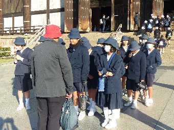 【放送原稿の紹介】今日の献立は,小型セサミパン,牛乳,七草うどん,長寿和えです。今月の給食目標は、「尾道の食べ物を知ろううです。尾道市は,山や海島があり,自然の恵みがあふれた地域です。尾道の食べ物や料理をふりかえったり,味わわったりしましょう。