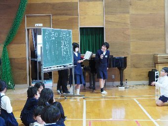 【放送原稿の紹介】今日の献立は,ごはん,牛乳,肉だんごの中華煮,小松菜のしらす和えです。3月の給食目標は「一年間を振り返ろう」です。4 月から2月まで()の給食目標をいくつ達成することができましたか。一 つでもできることを増やせた人は素晴らしいです。食べ物の栄養や食事のマナー,地域でとれる食べ物や郷土料理,食事を作ってくれた人たちへの感謝の気持ちなどを学ぶことができたでしょうか。これからも給食を食べながら放送を聞いて,給食に関 するいろいろなことを学んでいきましょう。