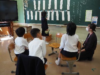 今日は,七草についてのお話です。日本には,1月7日の朝に春の七草を入れたおかゆを食べて1年の健康を祈る風習があります。無病息災を願うとともに,野菜が乏しい冬場に不足しがちな栄養素を補うという目的 もあります。今日の給食は「春の七草」から「せり」「すずな(かぶ)」「すずしろ(大根)」を使った「七草うどん」です。他の七草には,なずな,はこべら,ごぎょう,ほとけのざがあります。今年もみんなが元気に過ごせることを願っていただきましょう。