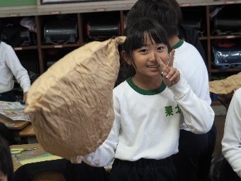 【放送原稿の紹介】今日の献立は,小型セサミパン,牛乳,きつねうどん,玄米サラダです。今日は,食品ロスについてお話しします。食品ロスとは,まだ食べられるのに捨てられてしまう食品のことです。日本の食品ロスは1年間で472万トンです。これは,日本人1人がおにぎりを毎日1個捨てていることになります()。食品ロスの問題は,食べ残された食べ物は燃やして処理されるので,最終的には地球温暖化につながるといわれています。好ききらいを少しづつ減らして食べられる量を増やしていくことは,捨ててしまう食べ物を減らすことにもつながります。また,食べられるものや量が増えることは,食の幅が広がり食 べ物を食べることを楽しむことができたり,食べる量が増えることは健康に過ごすことにもなります。
