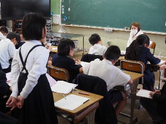 【放送原稿の紹介】今日の献立は,味付パン,牛乳,チキンビーンズ,コールスローです。日本には食事の前と後のあいさつがあります。「いただきます」「ごちそうさま」ですね。それぞれどんな意味があるのか知っていますか?「いただきます」は動物や植物の命である食べ物をいただくことへの感謝が込められています。「ごちそうさま」は食事を用意するために駆け回ってくれてありがとうという意味です。私たちが食事ができるまでには,多くの人たちが関わっています。感謝の気持ちを忘れずに,食事のあいさつをしましょう。