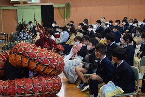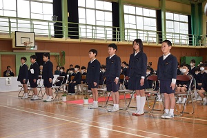 5時間目は「6年生を送る会」を行いました。全校で「だるまさんが転んだ」と「おにごっこ」で遊んだあとは、1〜5年生からのプレゼント渡しです。それぞれたてわり班でお世話になった6年生に、感謝の気持ちを込めて渡しました。6年生からは各学年にメッセージが贈られ、心温まる会となりました。泣いている6年生もいたようです。