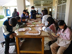 2日目の午前中はウォークラリーをしました。地図を頼りに班でコースを回り、協力しながらクイズに答えていました。最後の活動は杉の壁かけ作りです。2日間をふり返りながら思い思いの作品を作ることができました。