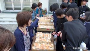 ■長江中学校体育館で行われた「長江中学校文化祭」の昼休みに,文化教育委員会が昼食用パンと飲料を販売しました。