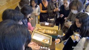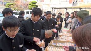 ■尾道でも有名なパン屋さんの「あん・チョコ・クリーム」パンをよりどり3個で100円という破格の値段で販売したところ,計300個のパンは即時完売の大盛況ぶりでした。生徒・保護者・先生方に喜んでもらおうと収益を得ない(600円の赤字)価格設定と文化教育委員さんの笑顔のお蔭で昼からの公演も大成功!来年度も企画したいですね。