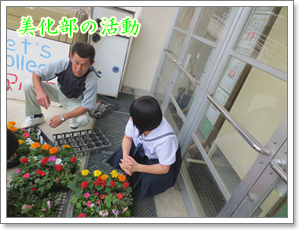 美化部で,学校の環境美化の一環で,花壇にたくさんの花を植えました。