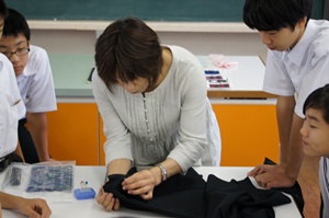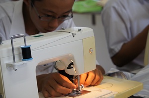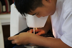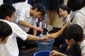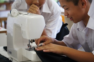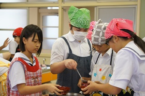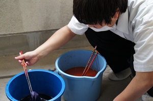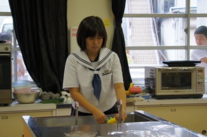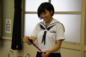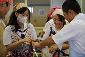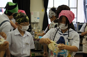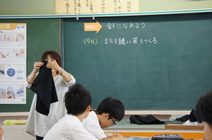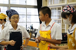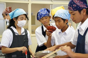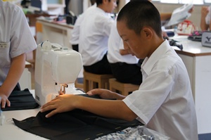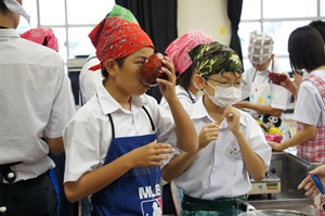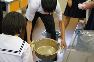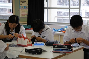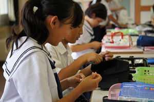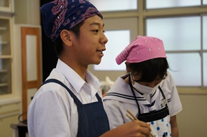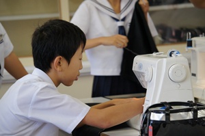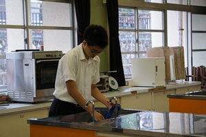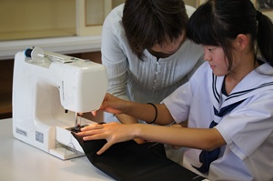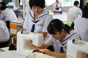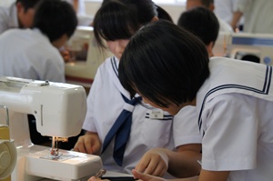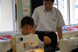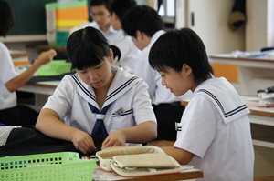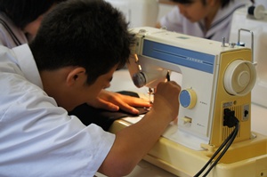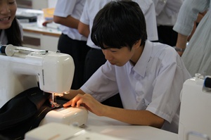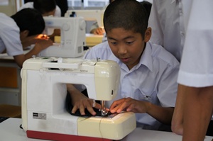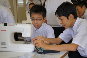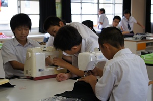 先週から,1学年では裁縫実習,2学年では調理実習,3学年では染物実習を行っています。