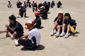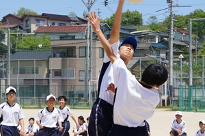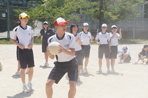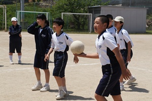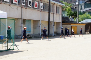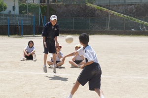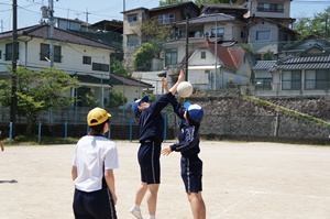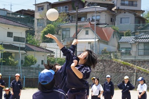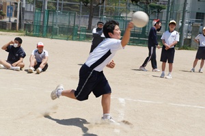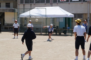 3時間目は組連合対抗,4時間目はクラス対抗で試合を行いました。3年生は,1年生に優しくボールを投げていました。また,多くの人がボールを投げることができるよう,まだボールを触っていない人にボールを回していました。3年生の後輩を思いやる気持ちや,みんなで協力して頑張りたいという思いがプレイに出ていたと思います。クラスや学年を越えて,親睦を深めることができたと思います。