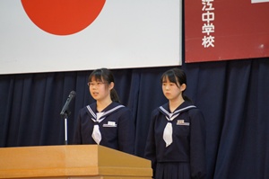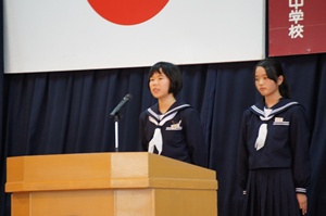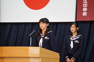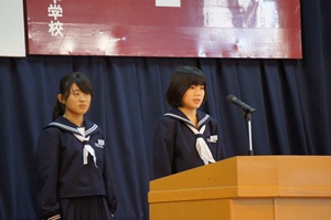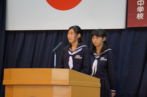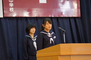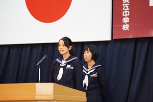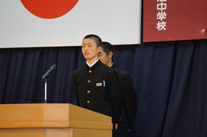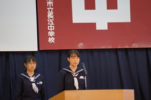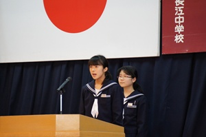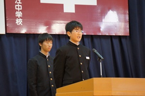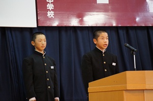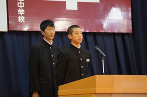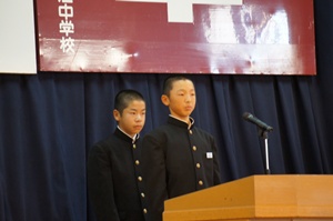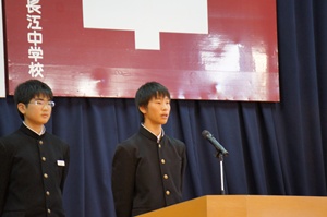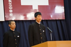 立候補者は長江中学校をよりよいものにするため,「自分達で学校を変えていける生徒を目指す」,「当たり前の事を当たり前にできる学校にする」,「全校が高い目標をもち,挑戦し続ける学校にする」,「思いやりあふれる学校を目指す」,「凡事徹底」などの選挙公約を掲げ,自らの思いを自分の言葉で表現することができました。また,応援者は立候補者のよさを力強く表現することができました。