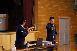 DVDや貨物検査等で実際に使われる金属探知機などの器具を用いて分かりやすく説明をしてくださいました。