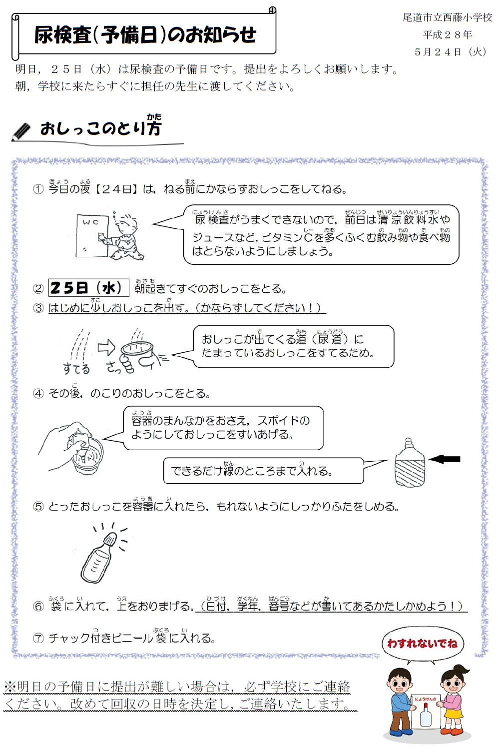 尿検査(予備日)のお知らせ