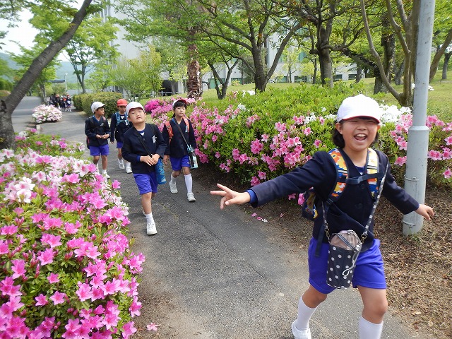 福山大学に遠足に行きました。 平成30年4月27日(金) 4月27日(金)1年生31名を迎えて 全校141名 歓迎遠足に行きました。 もうすぐ とうちゃく 1年生といっしょに たのしいね おいしくお弁当 ありがとう お互い自己紹介