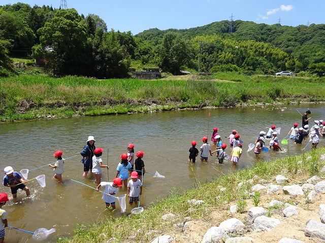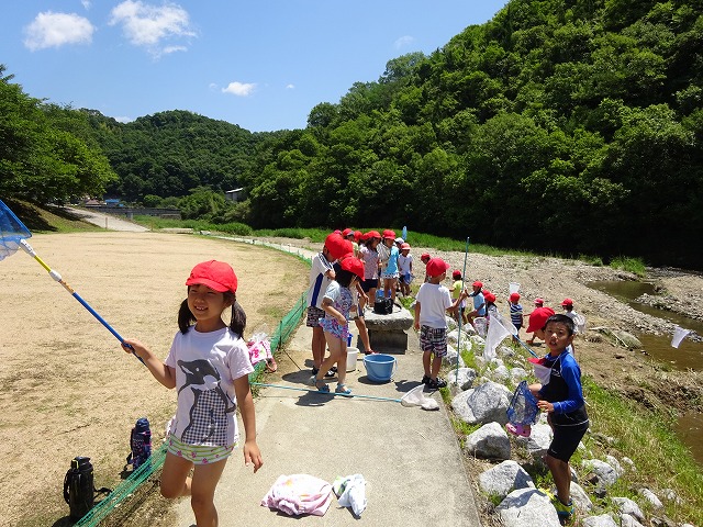 藤井川の観察 平成30年6月1日(金) 市の環境部の方や町内の方から 藤井川の水生動物を教えていただきました。 少しずつきれいになって来ています。 地域の方や市の方と藤井川の中へ いろんな生きものに(☆。☆)キラキラ きれいな川をまもるぞ