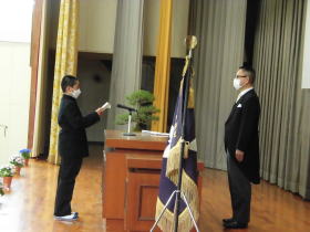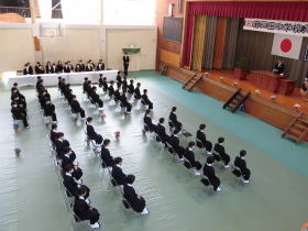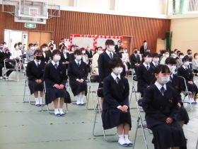新一年生は,満開の桜の下,期待と不安の入り交じった表情で登校してきました。入学式では,校長先生やPTA会長,在校生代表からのお祝いの言葉に,真剣な表情で耳を傾けていました。