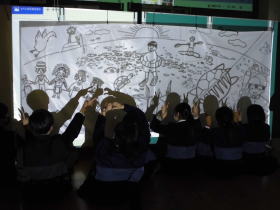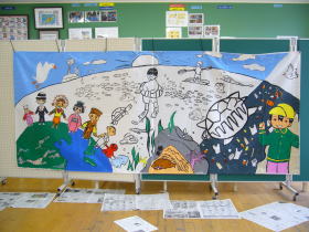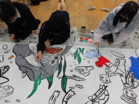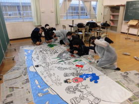 令和5年1月4日:2年生の総合的な学習の時間で壁画を作成しました。
