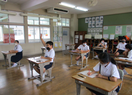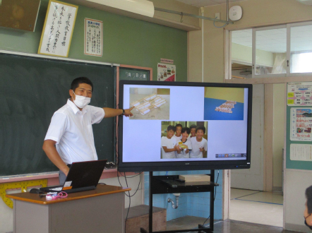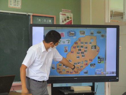 20年前に始めた第1回江府島探検の時に6年生だった青木先生に来ていただき、江府島探検の様子を聞きました。 まず、青木先生から、江府島に着いてから行った活動や、江府島の地形など、当時のことをたくさん教えていただきました。 その後、青木先生に江府島探検で聞きたいことをいろいろと質問し、答えていただきました。 |