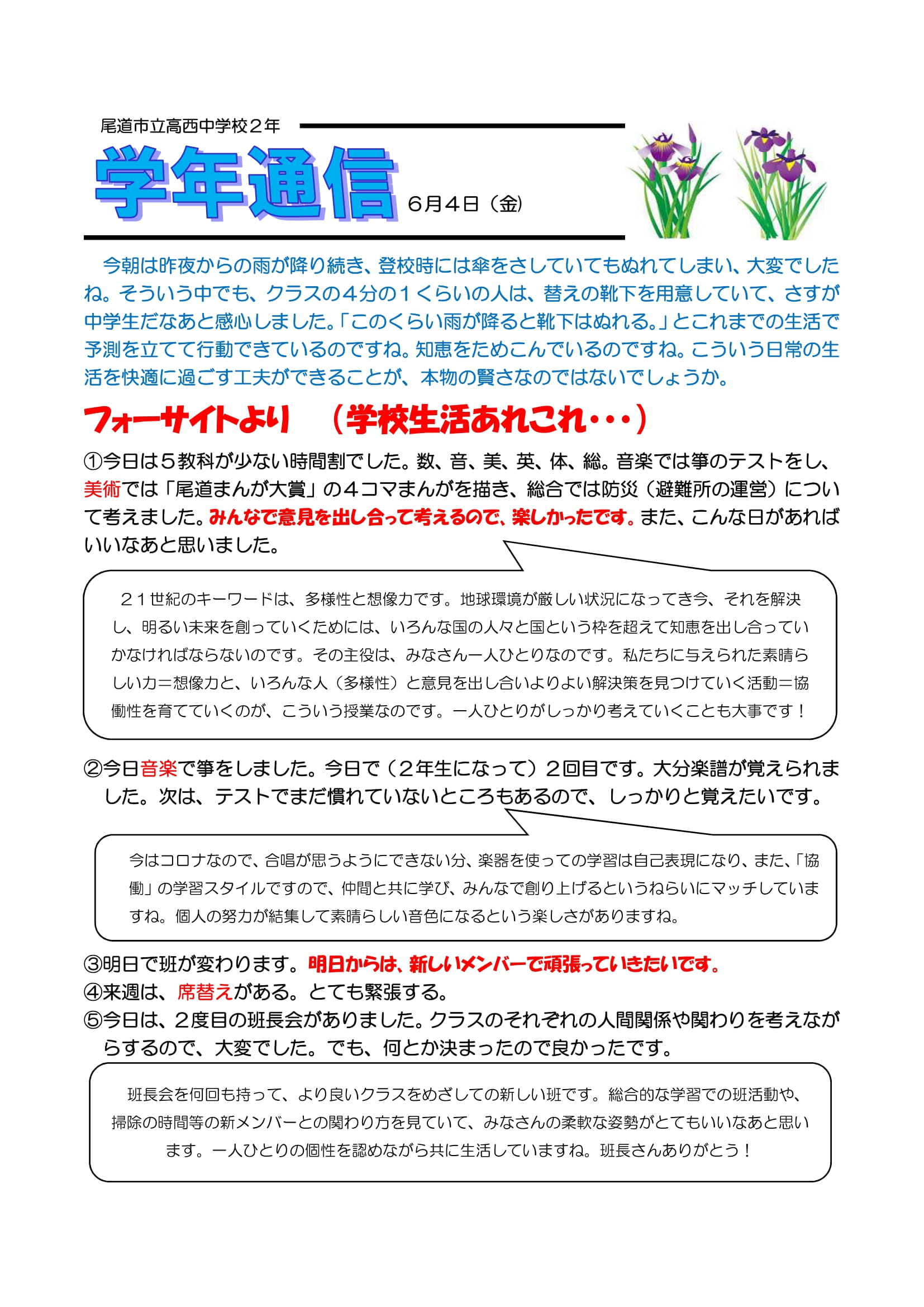 学年だより(2年)