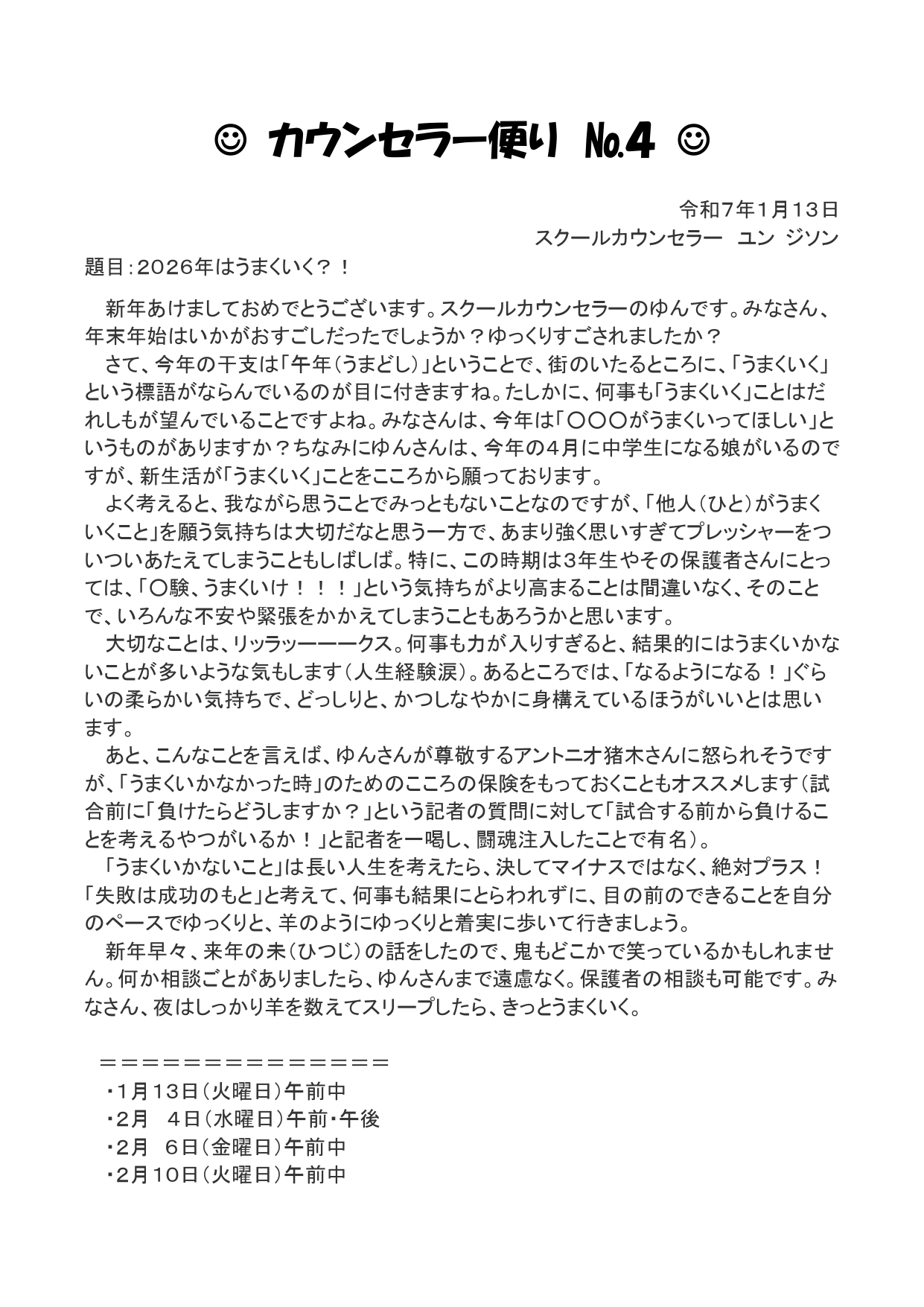 カウンセラーだより