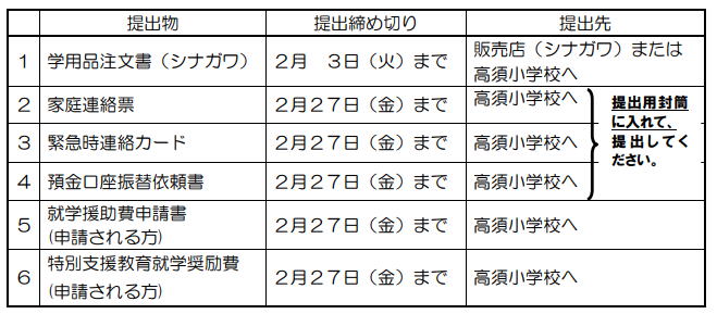 (内容) 2月3日(火)までに注文した学用品の受け取り
