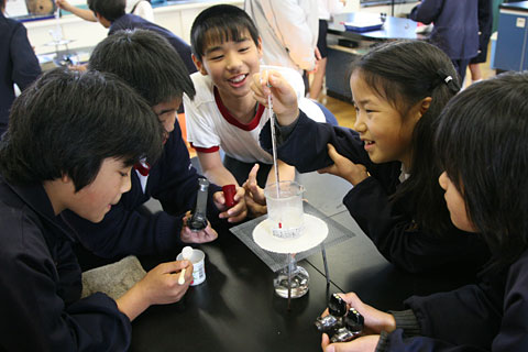 実験をする前に、班でどんな実験用具が必要か、どのような実験方法をするか話し合いました。
