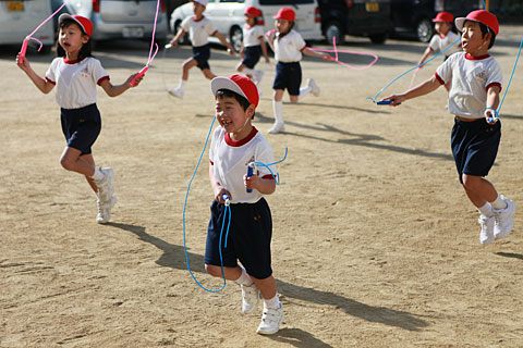 前跳びをしながらポイントまで走り、その場で設定された技を設定された数だけとびます。