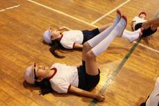 今朝の朝会で教えてもらった土堂っ子トレーニングを早速していました