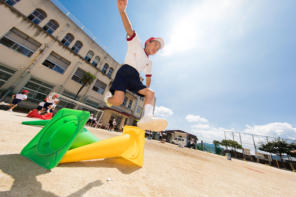 輪っかをケンケンパしたり、カラーコーンや箱をジャンプしたりしました。