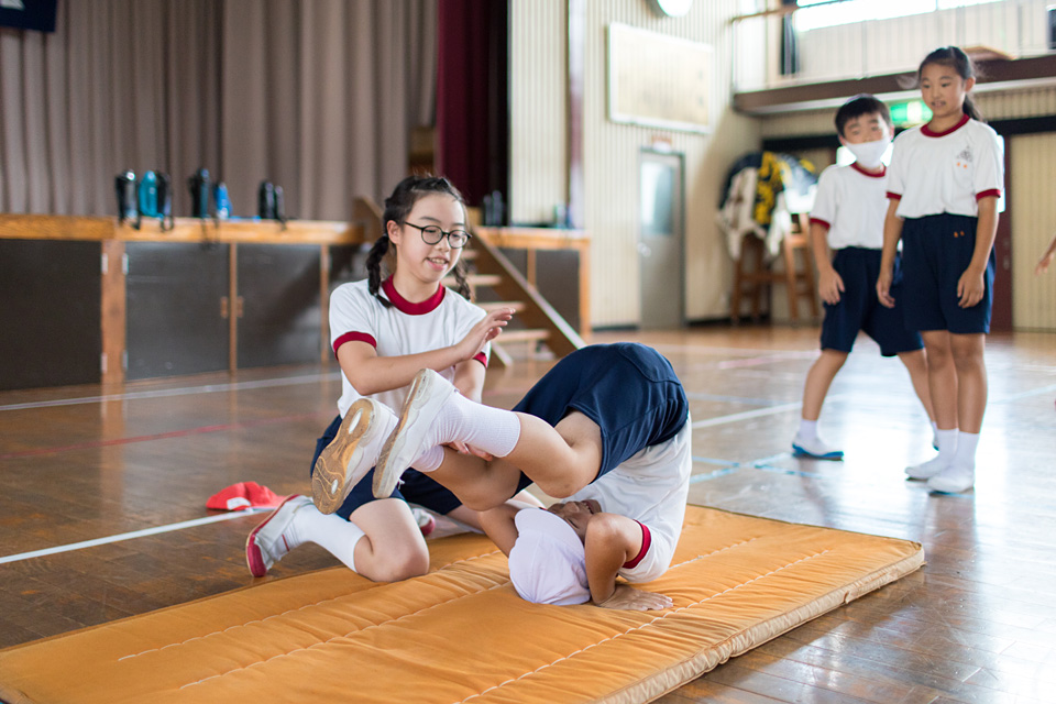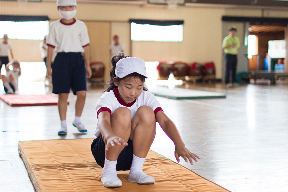 マット運動の前転と側転の練習をしました。