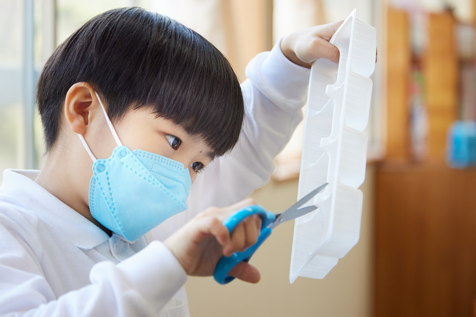 いろいろな形の箱を組み合わせて、作品を作りました。