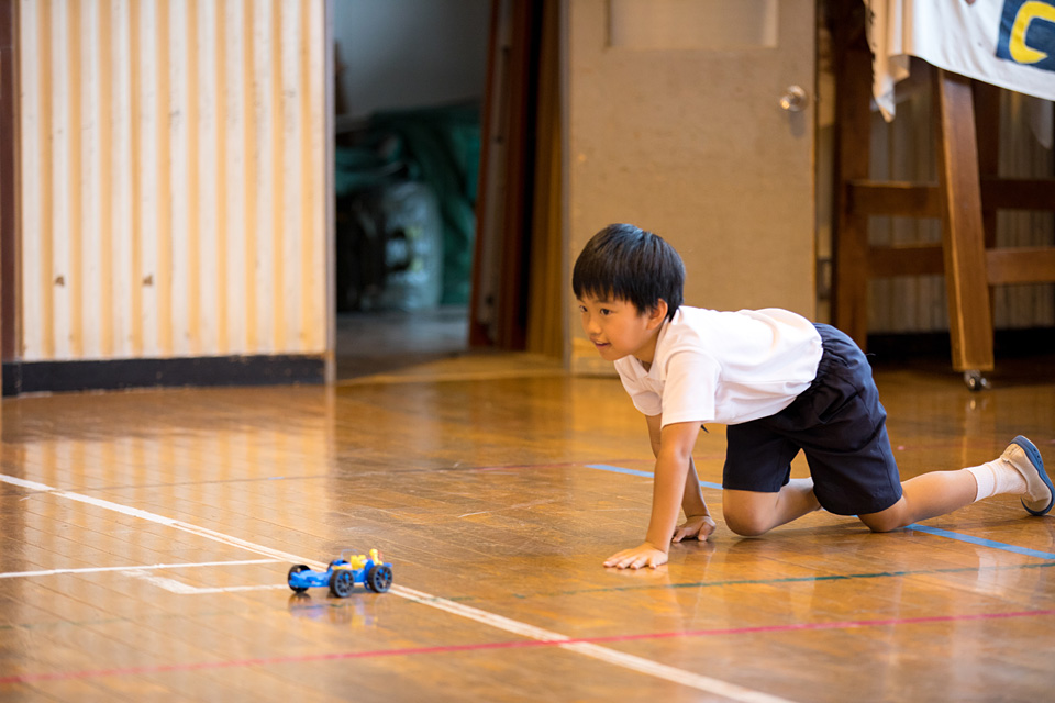 電池の力で走る車を走らせました。