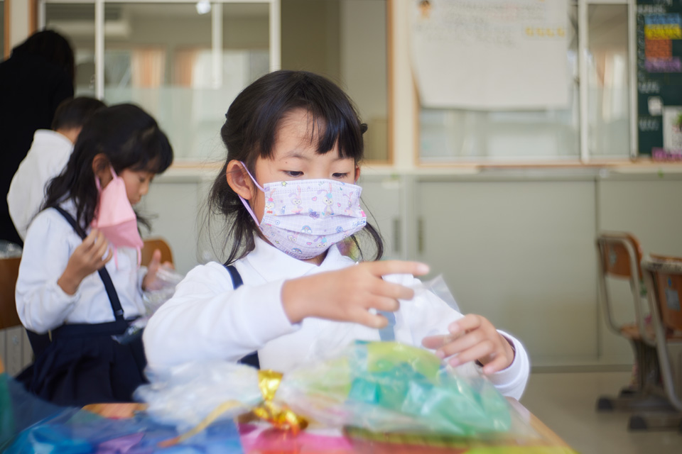 いろいろな色の素材を使って、キラキラする友達を作りました。
