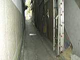 | ここは、石川小路です。 | ここの小路は今は少しせまく人が3人入ります。でも、昔はさらに細く人が1人くらいしか入らなかったといわれています。 | 昔、石川さんという人がいてそこから石川小路といわれるようになりました。 | この小路を通ると「渡場通り」というバス停の近道なので便利です。 |