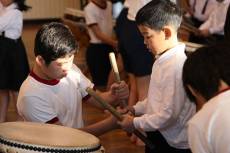 朝の太鼓の練習です。