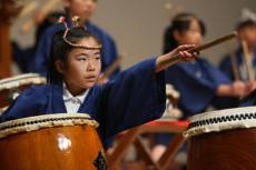 創立100周年記念式典での、6年生による土堂っ子太鼓の演奏です。